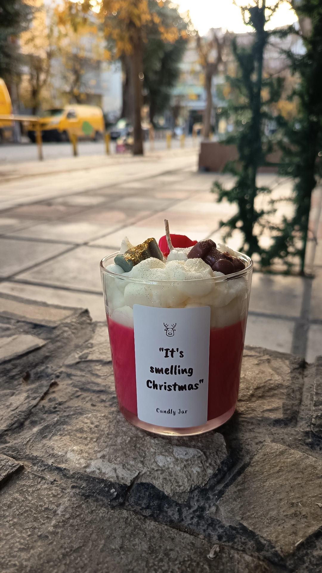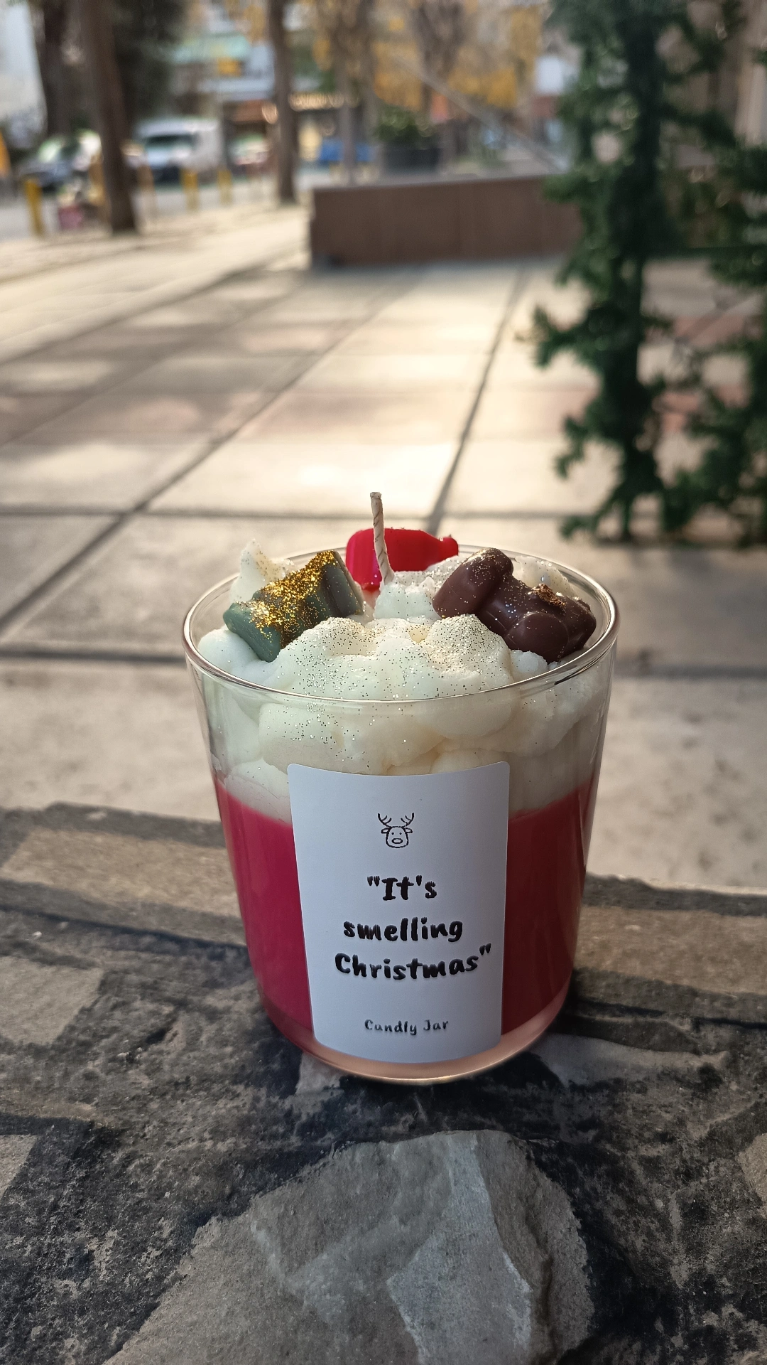 Το design του θυμίζει γιορτινό επιδόρπιο· διαθέτει αφράτη “σαντιγί” από κερί, χρωματιστές λεπτομέρειες και χρυσόσκονη για περισσότερη λάμψη. Έτσι, λειτουργεί όχι μόνο ως αρωματικό κερί αλλά και ως εντυπωσιακό διακοσμητικό που τραβάει την προσοχή.